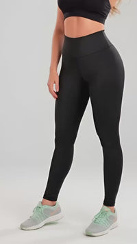 Tiene una pretina NON DISPLACE que es un fajón de 10 centrimetros que define cintura y no se bajan cuando ejercitas.