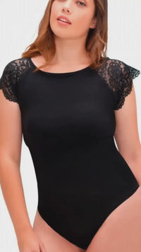 Body exterior cuello redondo con manga corta diseñada en delicado encaje.