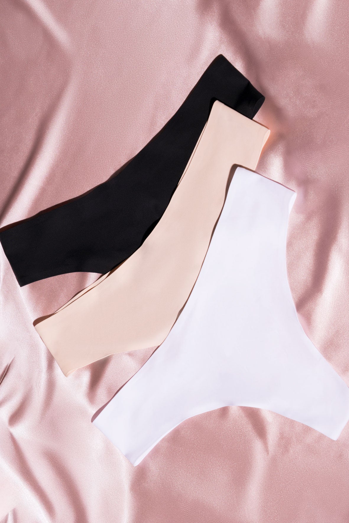 - Set de 3 pantys en tonos básicos: marfil, nude y negro.